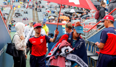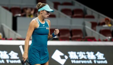 Magda Linette of Poland in action during the doubles quarter-final of the 2022 Miami Open WTA 1000 tennis tournament – 2022 Miami Open Day 10